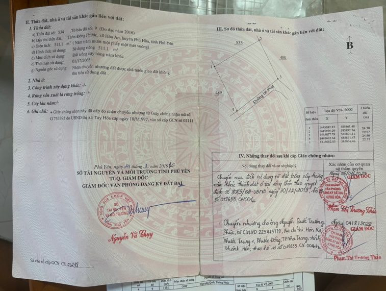 Địa chỉ: Thửa đất số 534, Thôn Đông Phước, Xã Hòa An, Huyện Phú Hòa, Tỉnh Phú Yên.