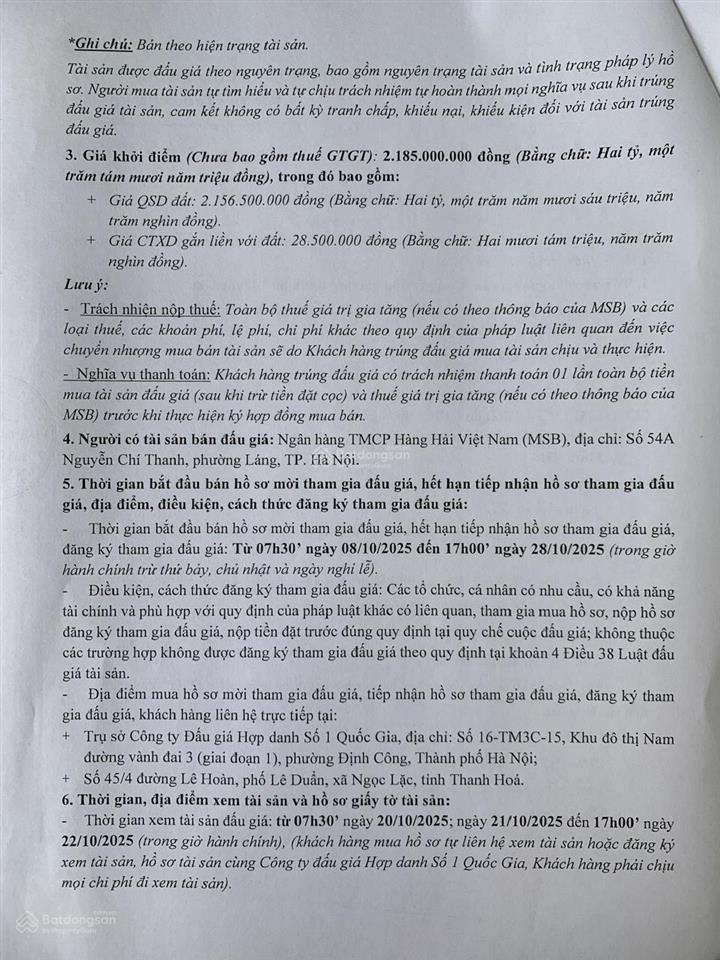 * Ghi chú: Bán theo hiện trạng tài sản.