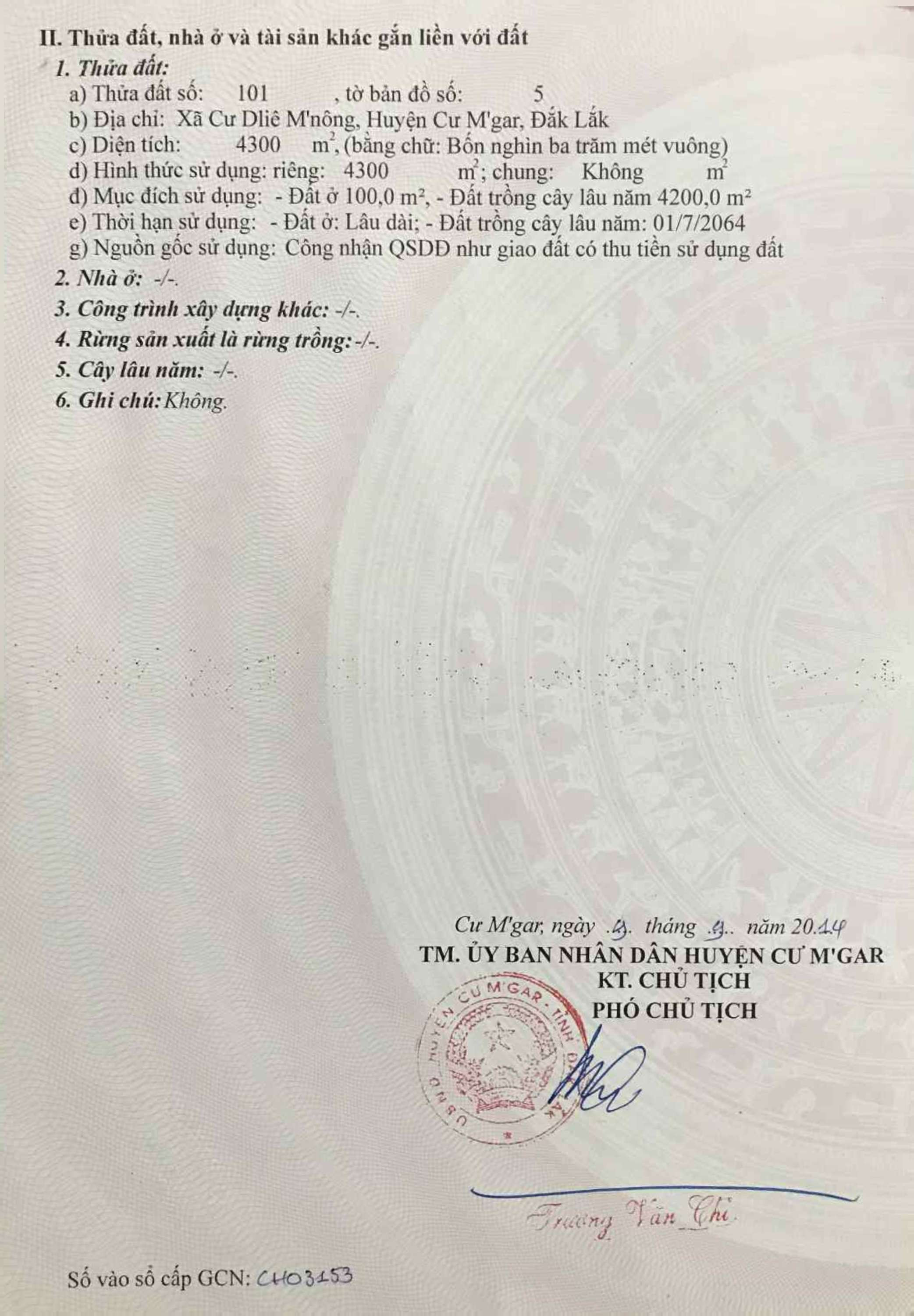 Chủ cần bán 4300m² đất( sẵn 100m² thổ cư)