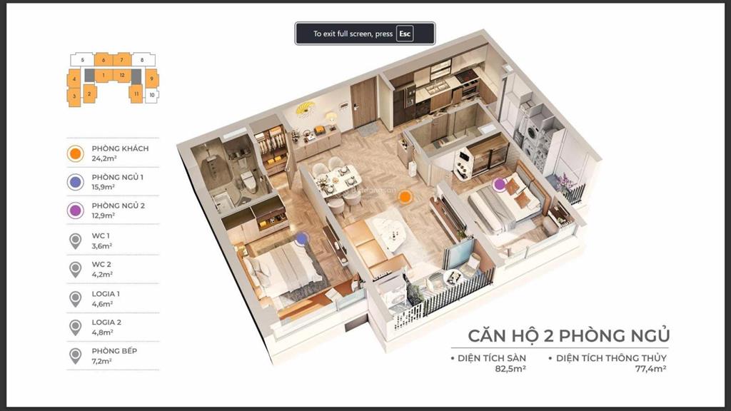 * Căn 2PN 83m² / 75m²/62m² (tầng cao): 3, XX tỷ.
