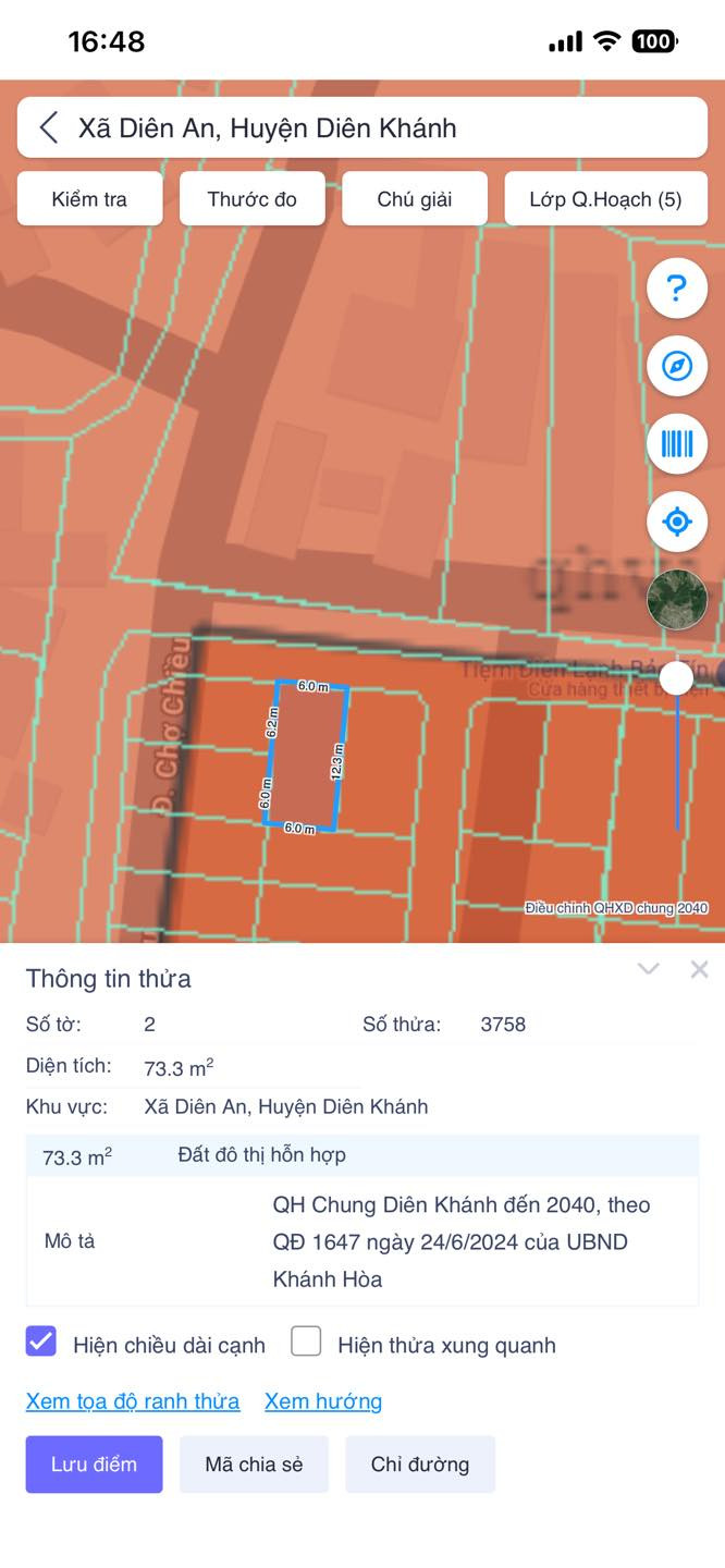 - Khu dân cư hiện hữu, cách sông 180m, cách đường 23/10 khoảng 600m, cách bệnh viện Nhiệt Đới 800m, cách chợ Diên An 999m, cách Tây Nha Trang (Vĩnh Trung) 1.9km, cách biển Trần Phú 12km,....