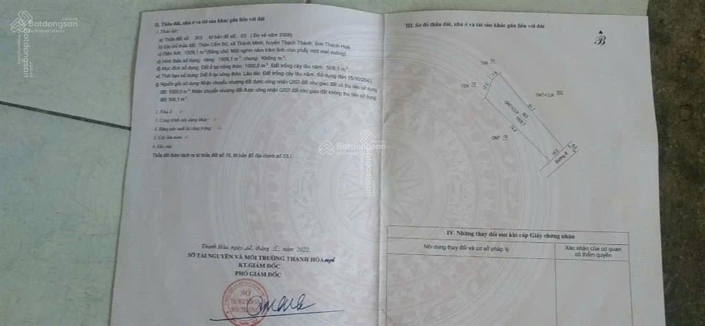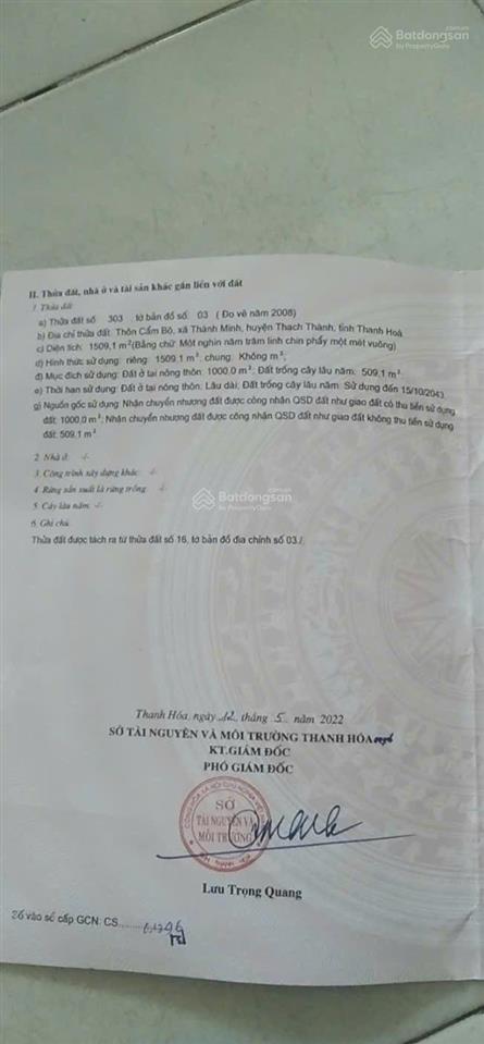 Cần bán gấp lô đất 1509m² thổ cư 1000m² 15 x 82 m nở hậu gần thác Đẻn Hồ Vũng Sú đẹp nhất Thanh Hóa.