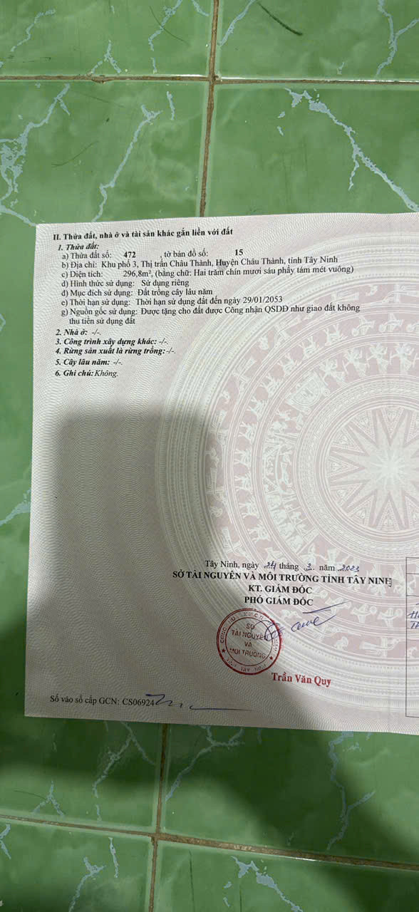 ĐẤT CÂY LÂU NĂM THỊ TRẤN CHÂU THÀNH 390TR