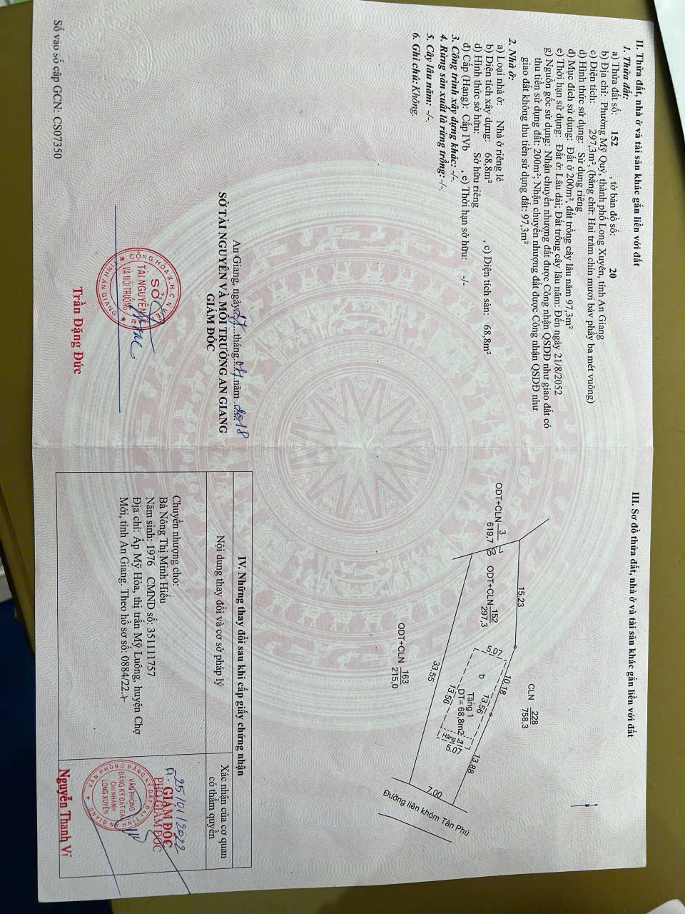 ** Diện tích: 297,3 m2 có 200m2 thổ cư