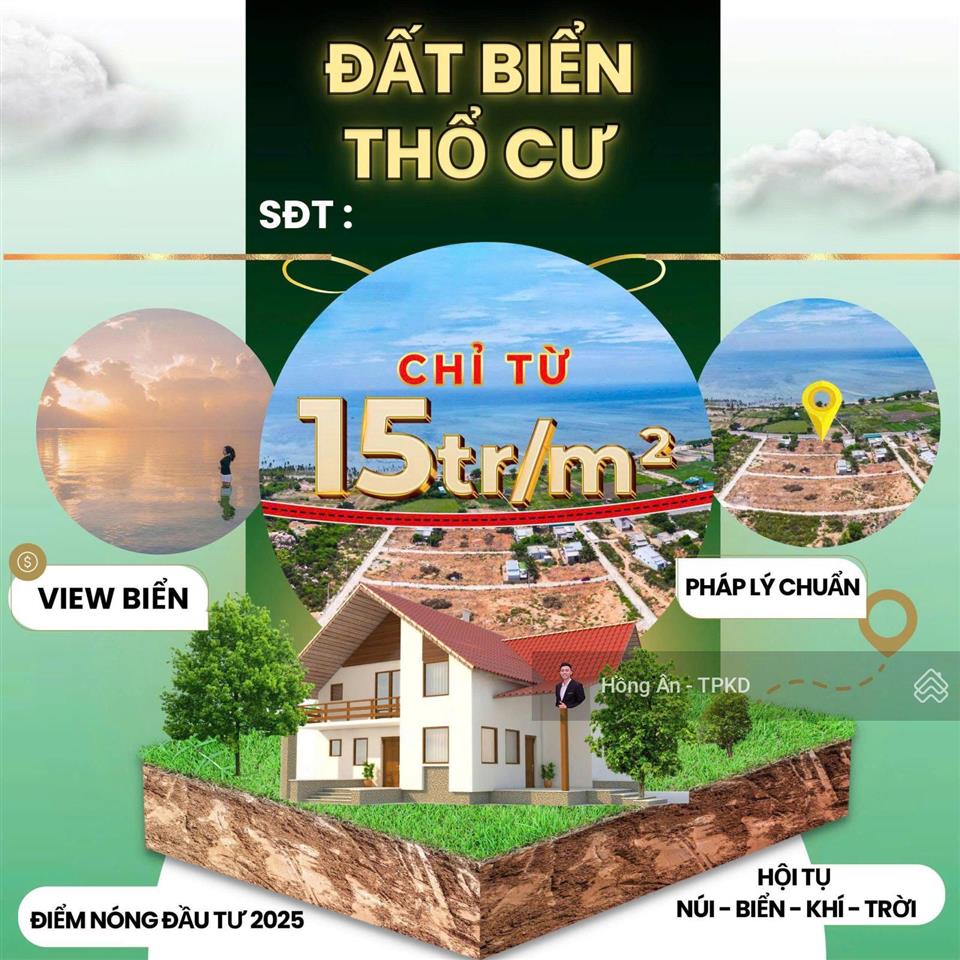 Lô đất đối diện biển chỉ từ 15tr/m², chưa đến 2 tỷ sở hữu cất két ngay, pháp lý rõ ràng, diện tích 120m² (6x20).