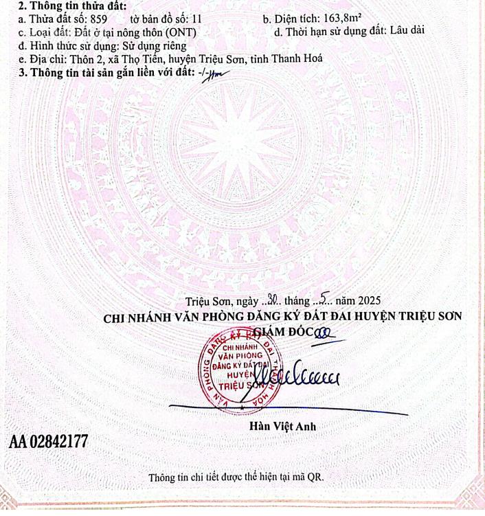 Đất mặt đường xã Thọ Tiến, cạnh sông thủy lợi, đường 8m, gần các tiện ích quan trọng. 163.8m full thổ cư, sổ đổ, 480 triệu.