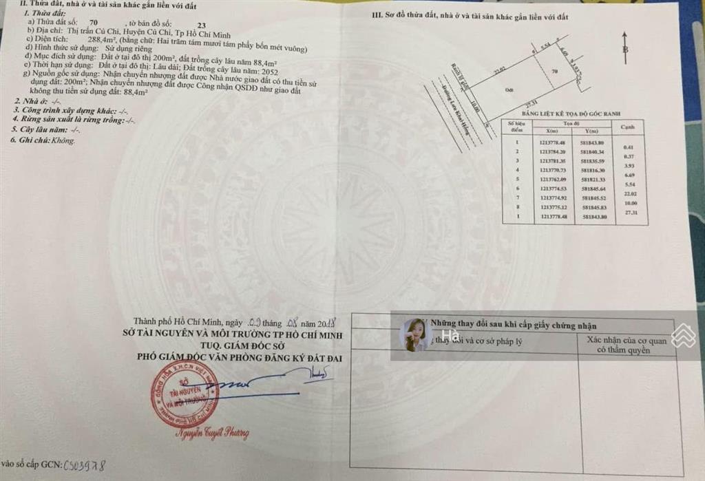 - Diện tích: 288m² (trong đó 200m² thổ cư).