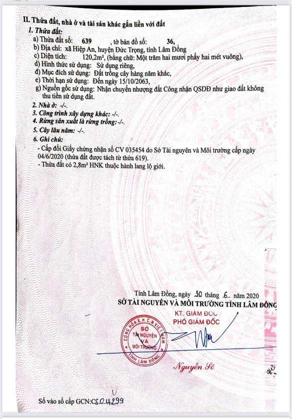 CẦN BÁN NHANH LÔ ĐẤT HIỆP AN – ĐỨC TRỌNG – LÂM ĐỒNG