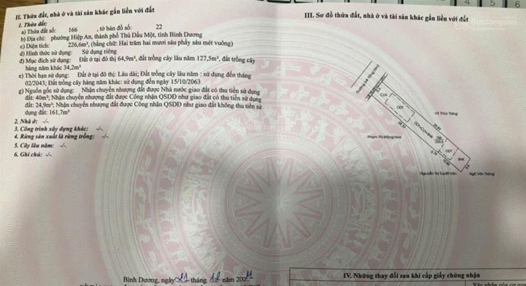 - Bán lô đất nằm sát đường Nguyễn Chí Thanh phường Hiệp An cũ nay thuộc Phú An, tp HCM.