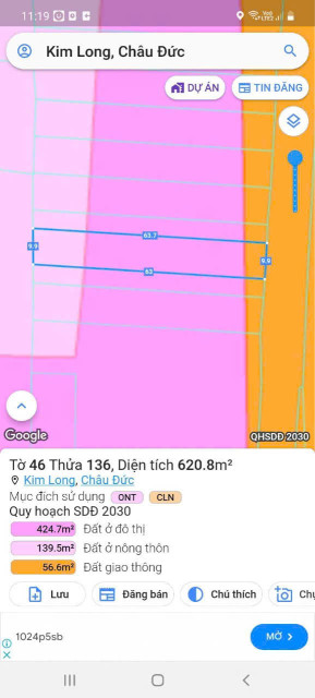 620m² (9,9m x 62m), có sẵn 100m² đất ở đô thị