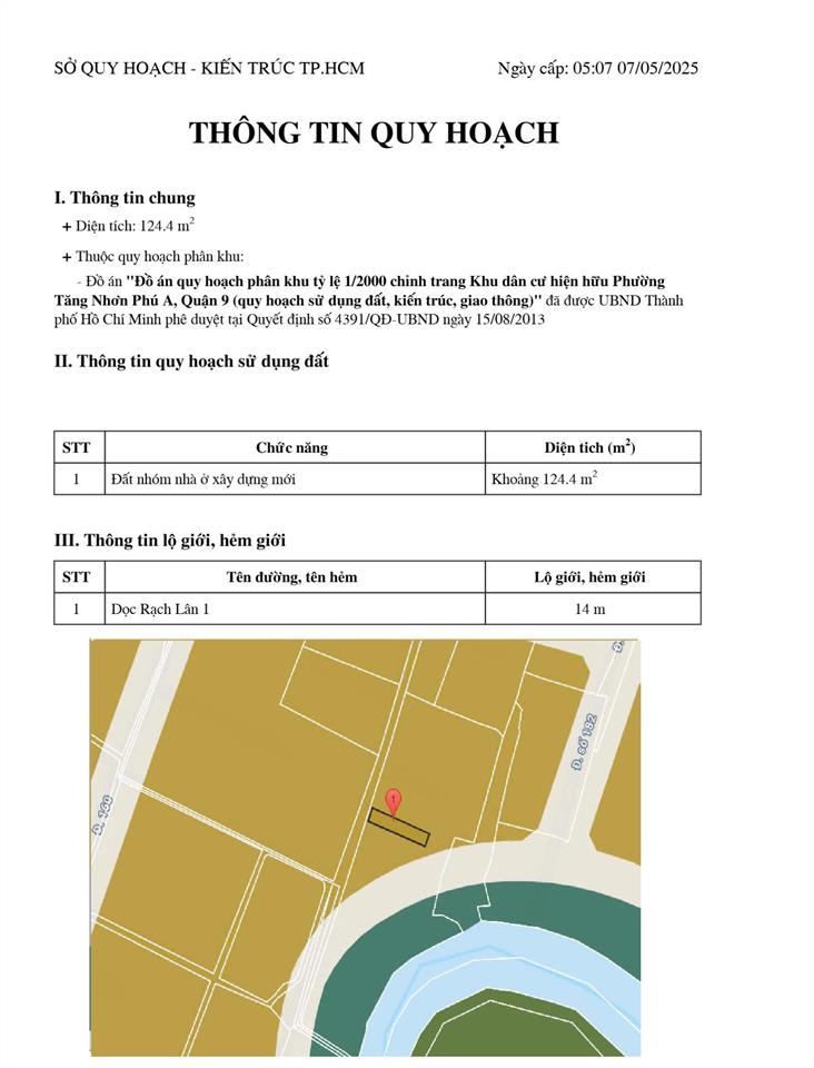 + Đường quy hoạch ven sông phía sau rộng 14m xây dựng (sẽ trở thành lô đất 2 mặt tiền trước và sau, có thể phân thành 2 lô) và kết nối với đường số 182 rộng 20m đi qua công viên khu công nghệ cao diện tích hơn 1 héc ta ngay phía trước mặt.