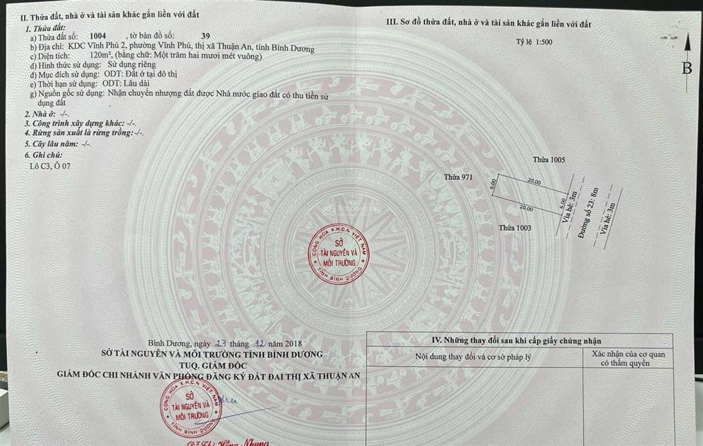 Duy nhất một lô đất KDC vĩnh phú 2 thuộc vĩnh phú thuận an cũ nay là phường bình hoà thành phố hồ chí minh