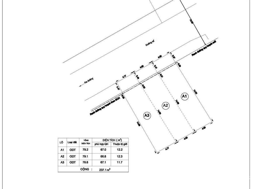 - 3 lô liền kề: mỗi lô 79m² (4,80m x 17.5m)