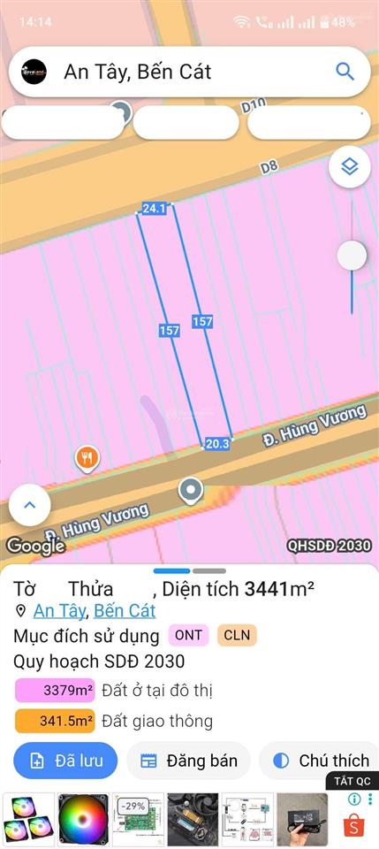 Giảm 02 tỷ - đất 2MT Hùng Vương - D8 KCN Rạch Bắp - 3.441m² (20x157m, NH 24m) - 24,5 tỷ TL.