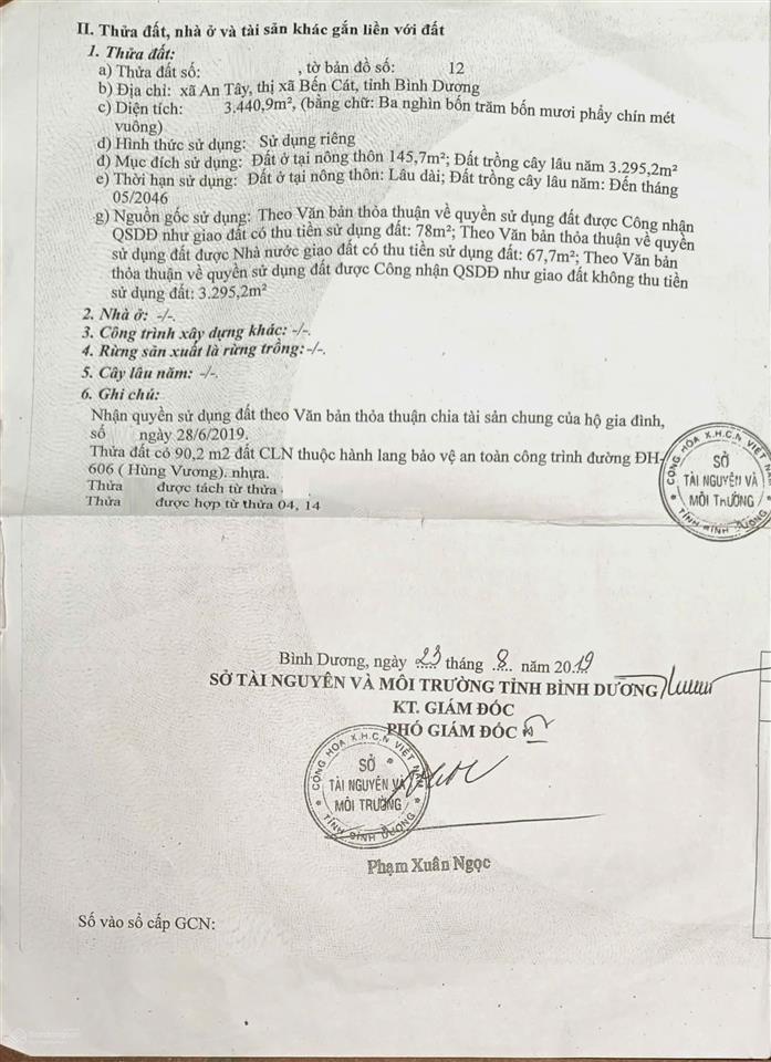 Diện tích: 3.441m² (CN 3441m², thổ cư 145,7m², có thể lên tối đa 3.379m² đất ở). Hiện có 2 căn nhà, 19 phòng trọ, 1 kiot, hệ thống NLMT 200tr.