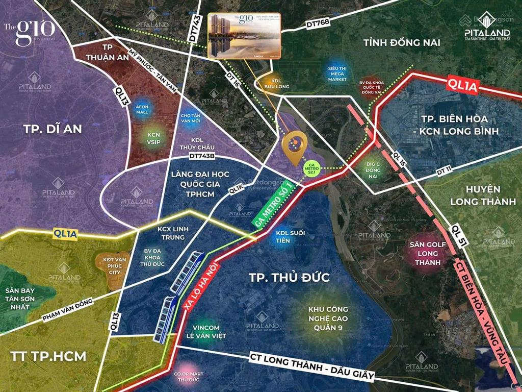 - Ga metro S. 0, S2.1 ngay đối diện dự án đi Bình Dương và sân bay Long Thành.