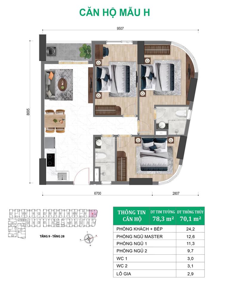 Căn góc đẹp nhất 3pn - 2wc rộng 78m², em đang có SUẤT NỘI BỘ tầng đẹp