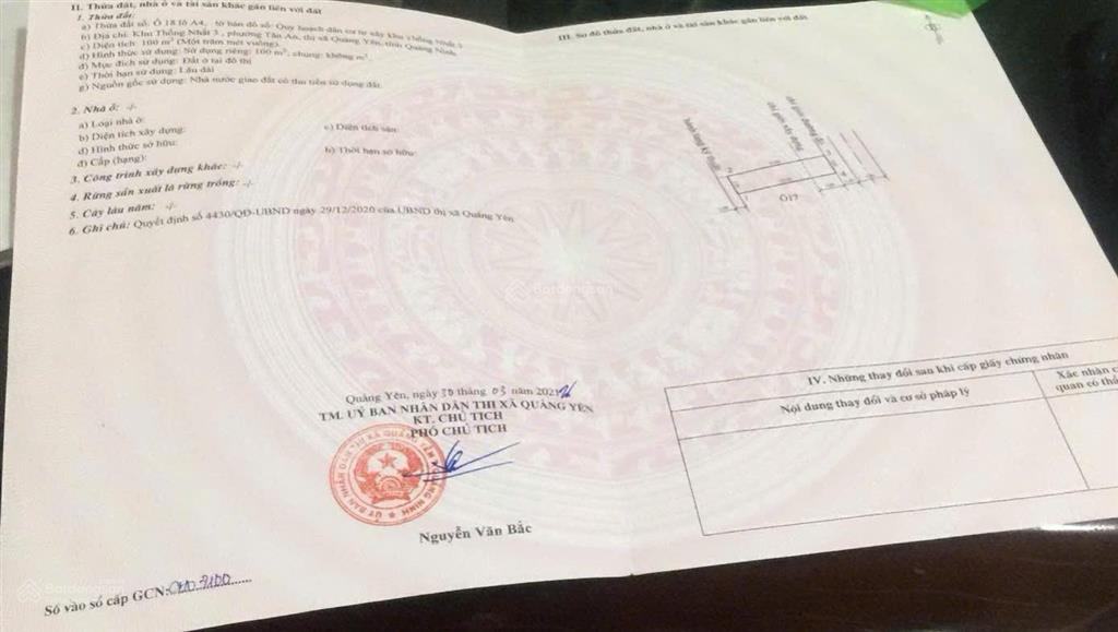 - Thống Nhất - Quảng Yên ô 100m² MT 5m. DT 150m² - MT 7.5m.