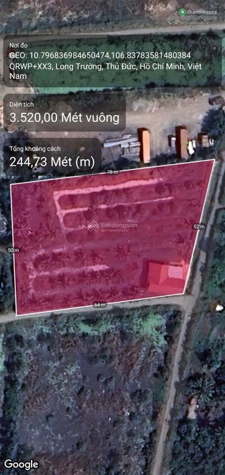 - Ngang 52m. Dài 78m. Diện tích công nhận: 3520m².