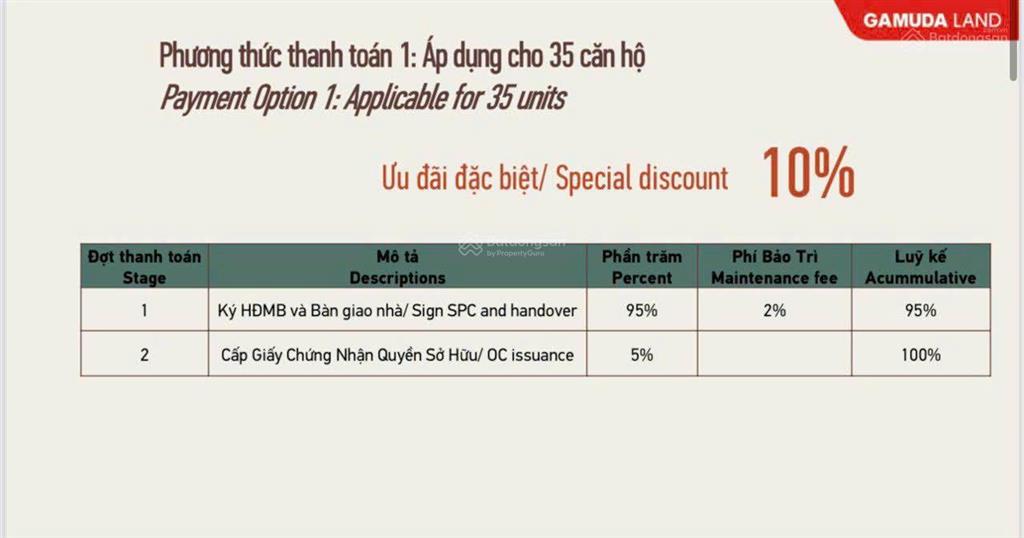 - Ki Hợp đồng mua bán: 20% + 2% phi bảo trì.