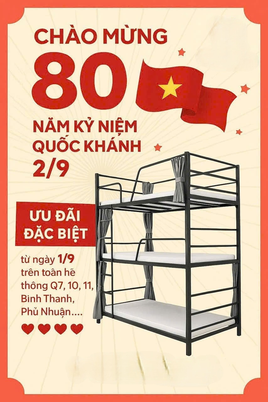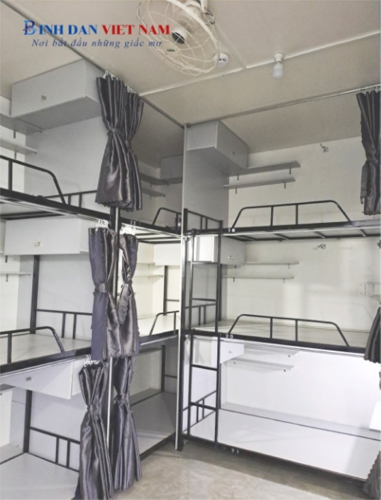🛏️ Giường tầng rộng 1m, có vách ngăn & rèm che riêng tư.