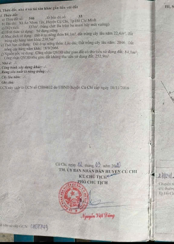 - Diện tích: 337m2 = 6m x 56m, thổ cư 84m2, đất ở khsx