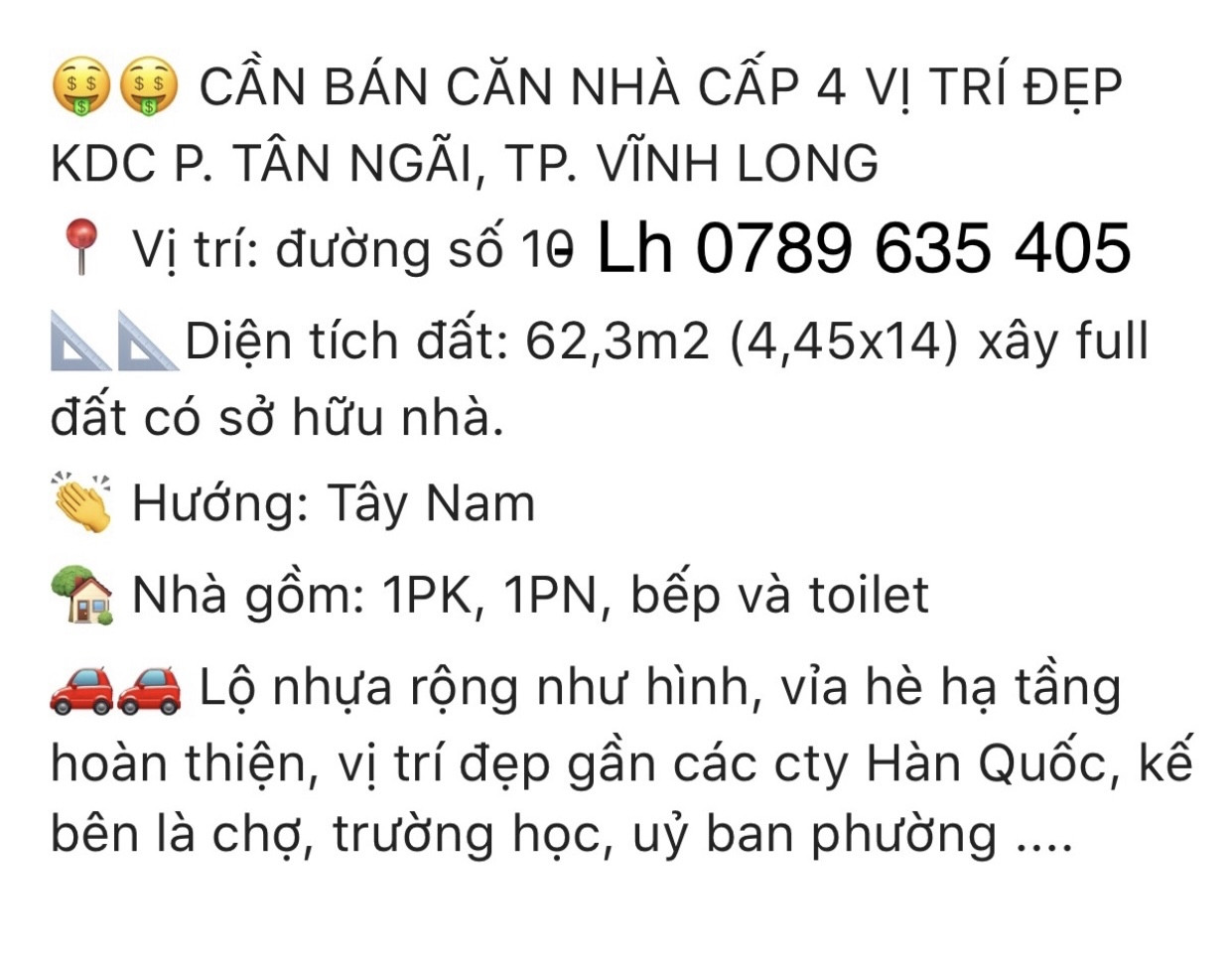 Gần 2 công ty , phía trước nhà là chợ . Tp Vĩnh Long