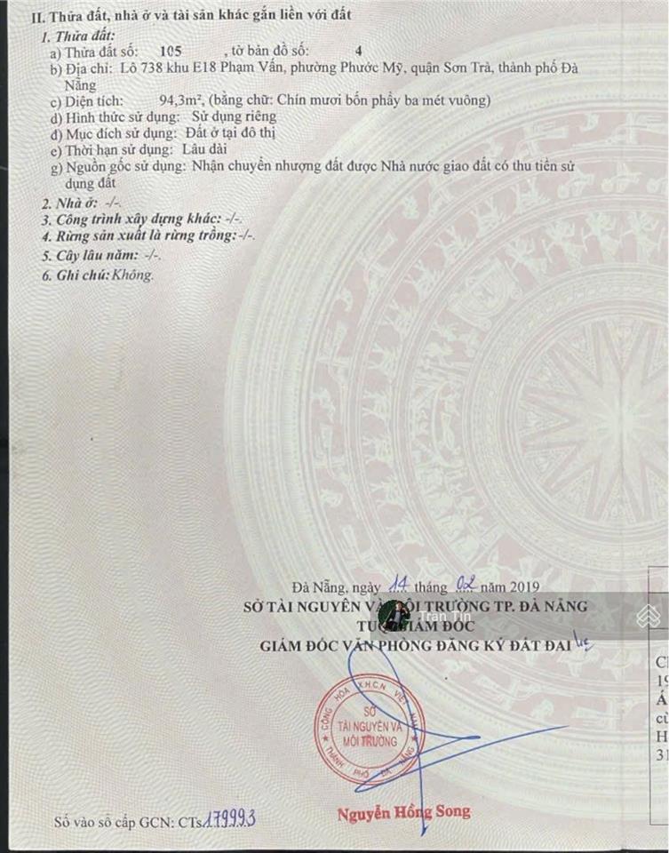 Lô đất 2 mặt tiền đường Phạm Vấn, 95m², đường 7.5m, cách biển 400m, giá bán: 18.5 tỷ.