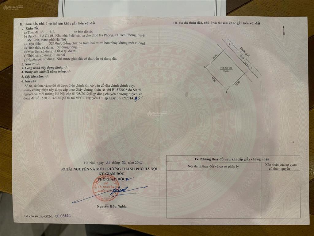 - Diện tích: 324m² thửa đất vuông vắn, đường rộng, hạ tầng hoàn chỉnh.