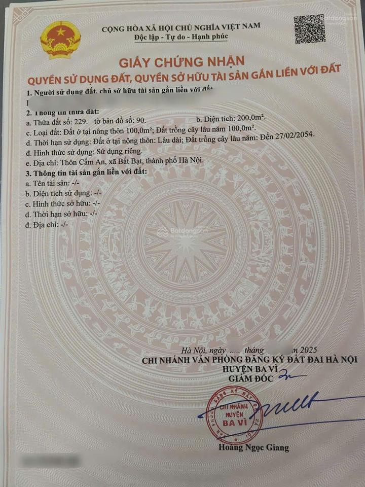 - Diện tích: 200m², có 100m² thổ cư + 100m² đất CLN