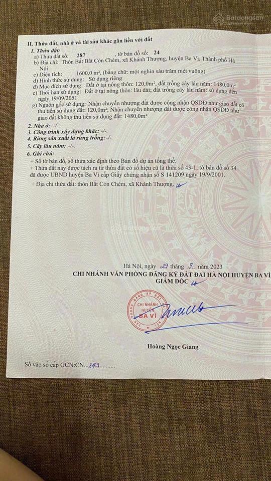 - Diện tích 1600m², có 120m² đất ở + 1480m² đất trồng cây lâu năm.
