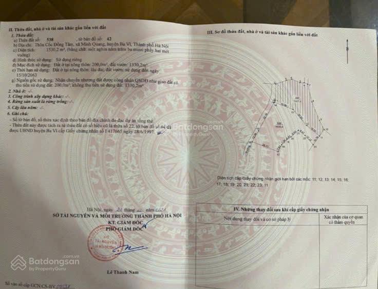 - Diện tích 1530m², có 200m² đất ở + 1330m² đất cây lâu năm.