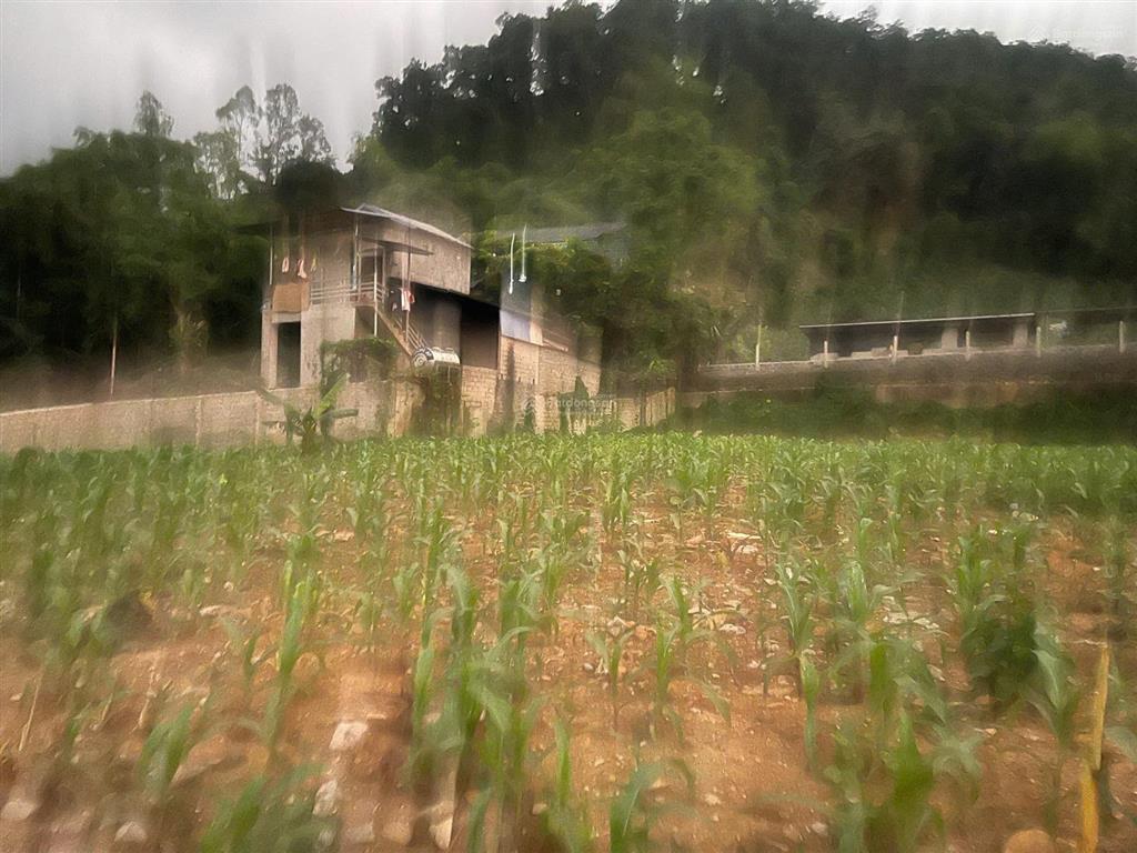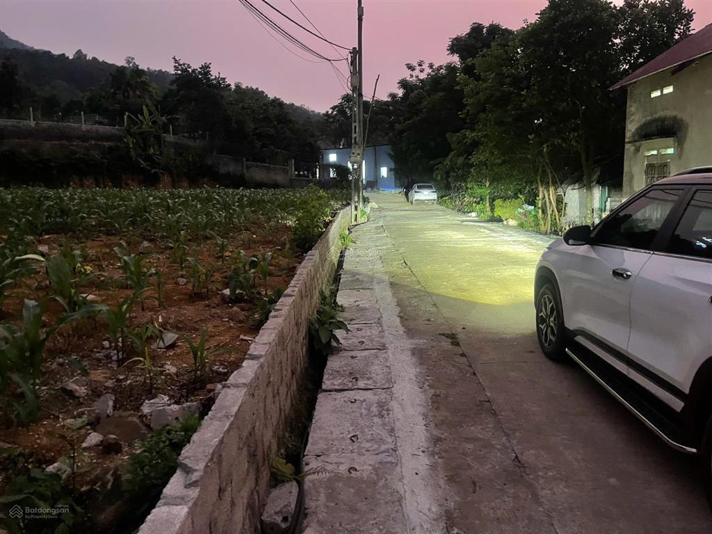 - Đường bê tông chạy quanh đất, xe ô tô tránh