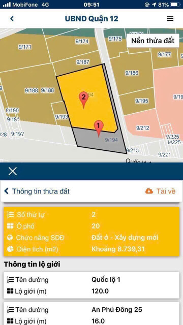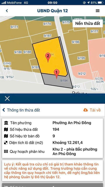 * Tờ 9/194: 83 x 137m = 10.052m2 đất Phi nông nghiệp. ( lâu dài)