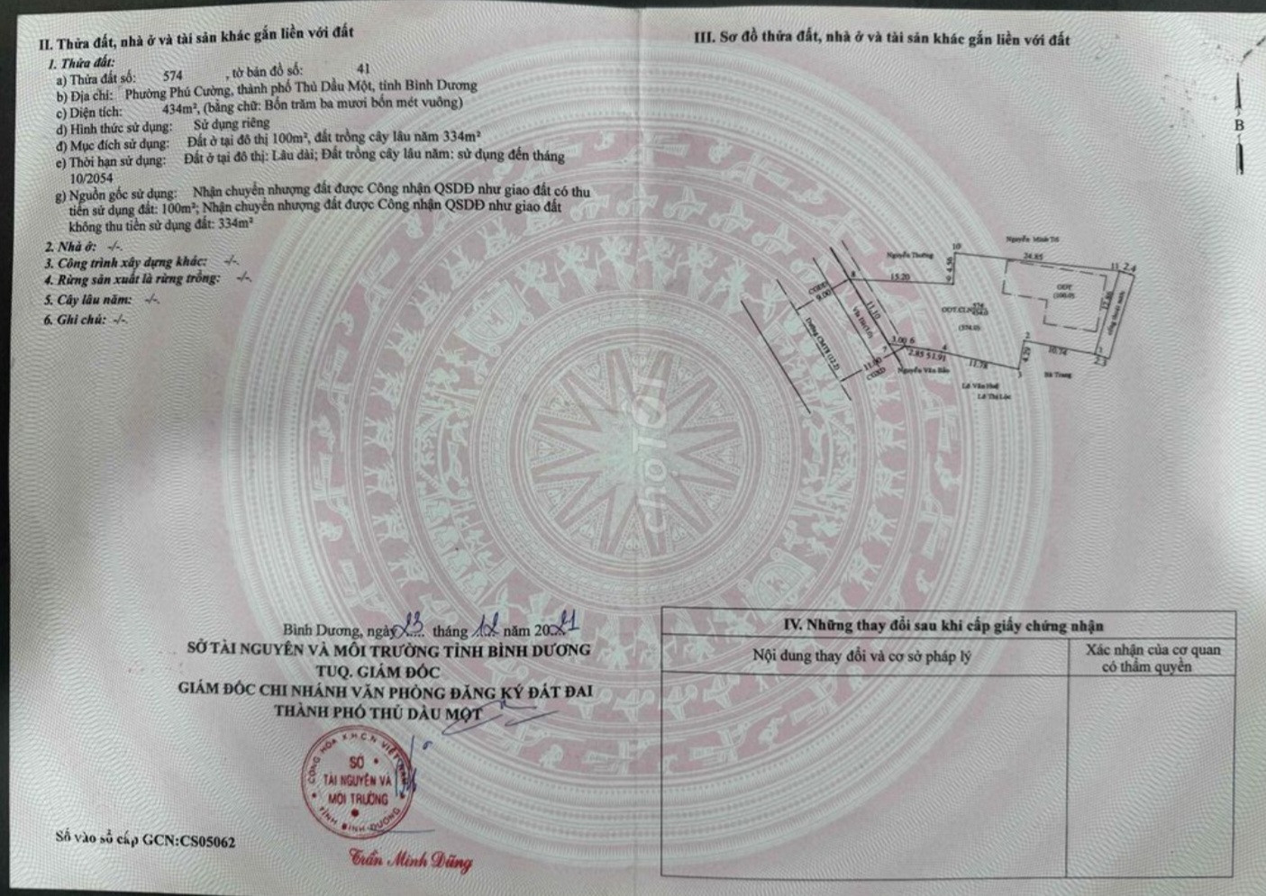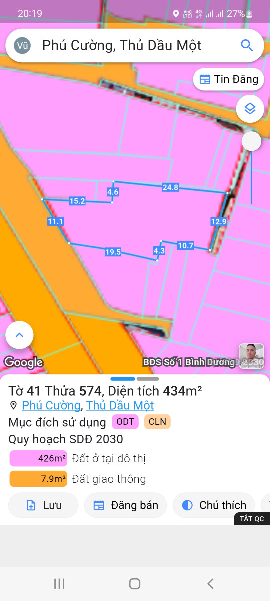 * Tờ 41/574: 11 x 30m = 434m2 đất ODT 100m2