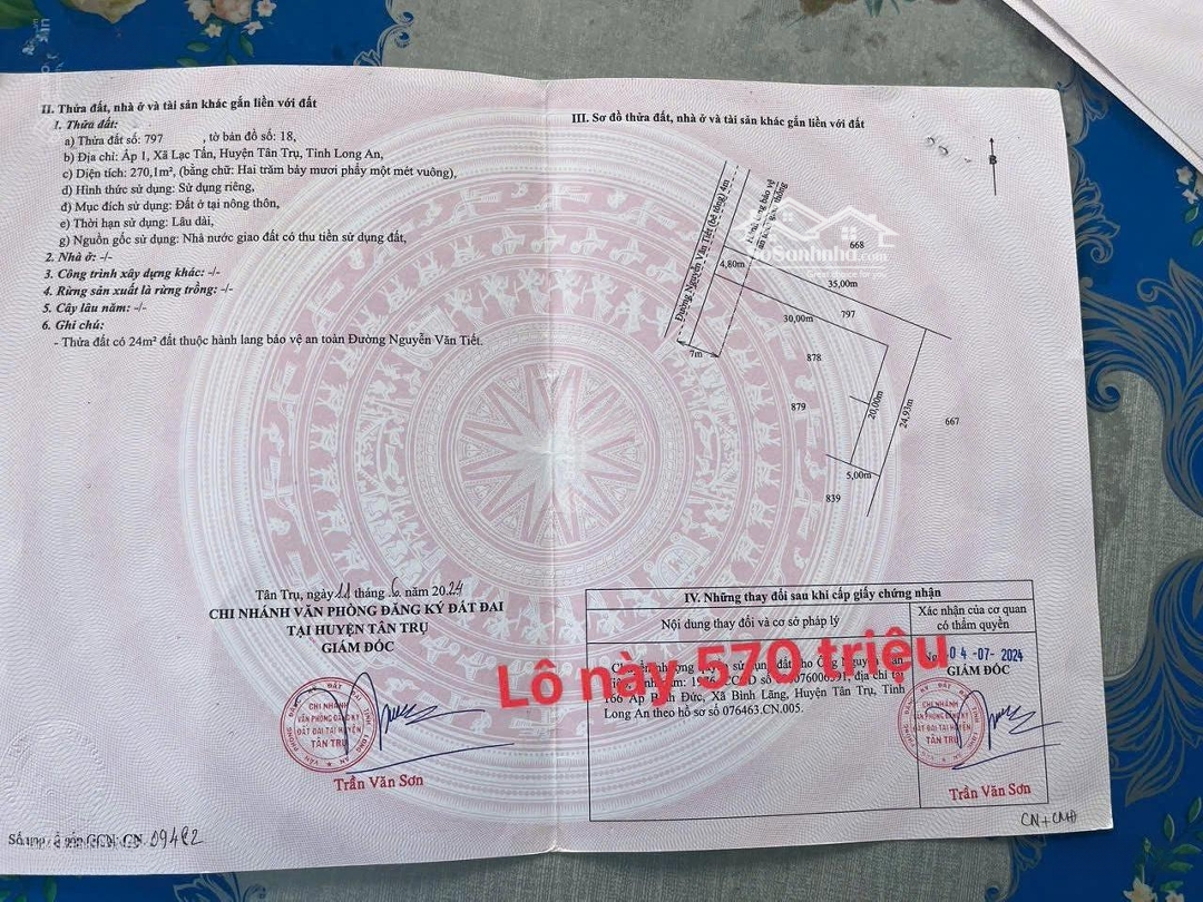 Lô 270m2 giá 570 triệu.