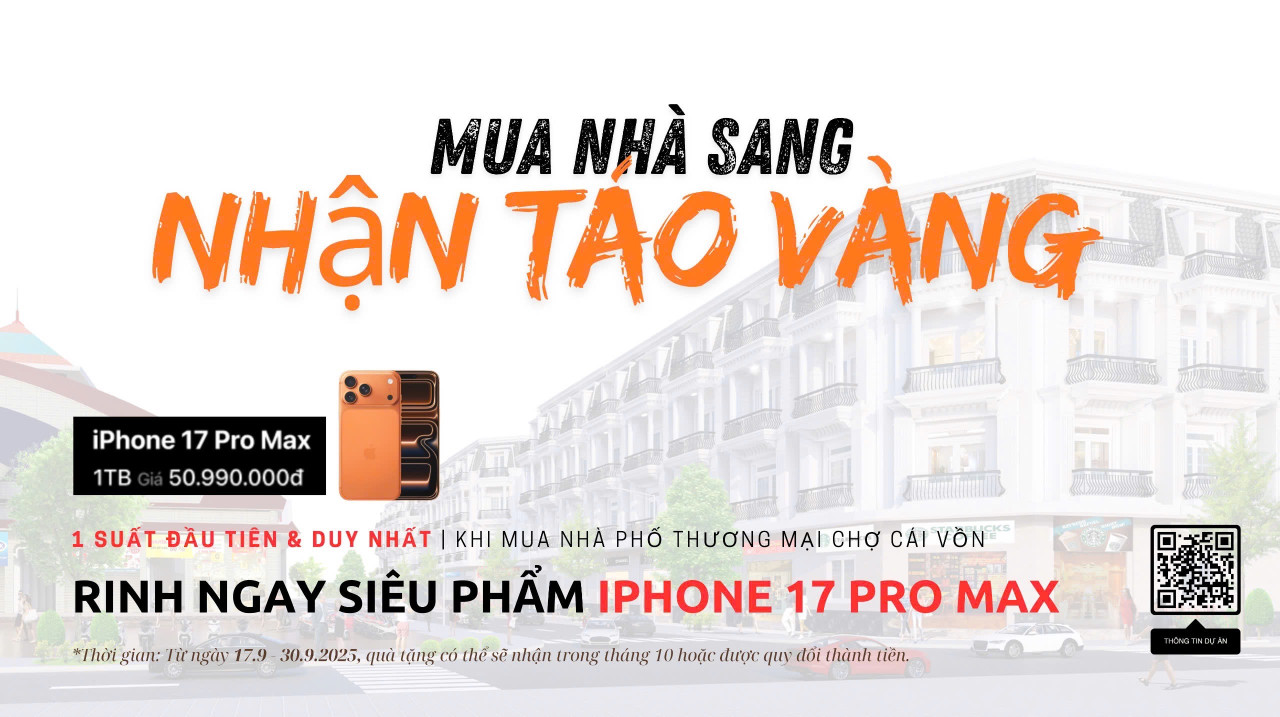 >>>Nhận ngay IPHONE 17 PRO MAX phiên bản 1TB khi mua nhà phố mặt tiền Chợ Cái Vồn (Từ 17/9/2025 - 30/9/2025).