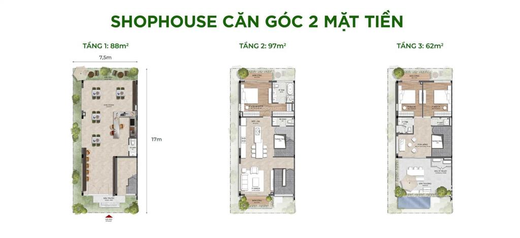 Chi tiết shophouse góc 2 mặt tiền: