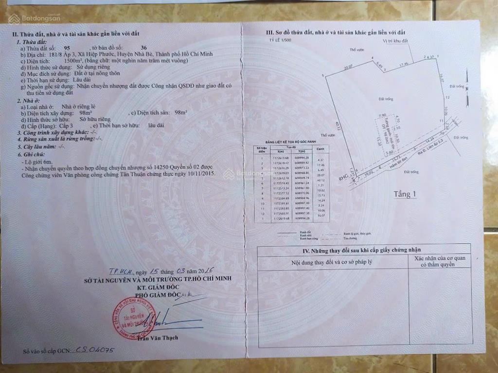 Diện tích: 1500m² (toàn bộ là đất ở thổ cư).