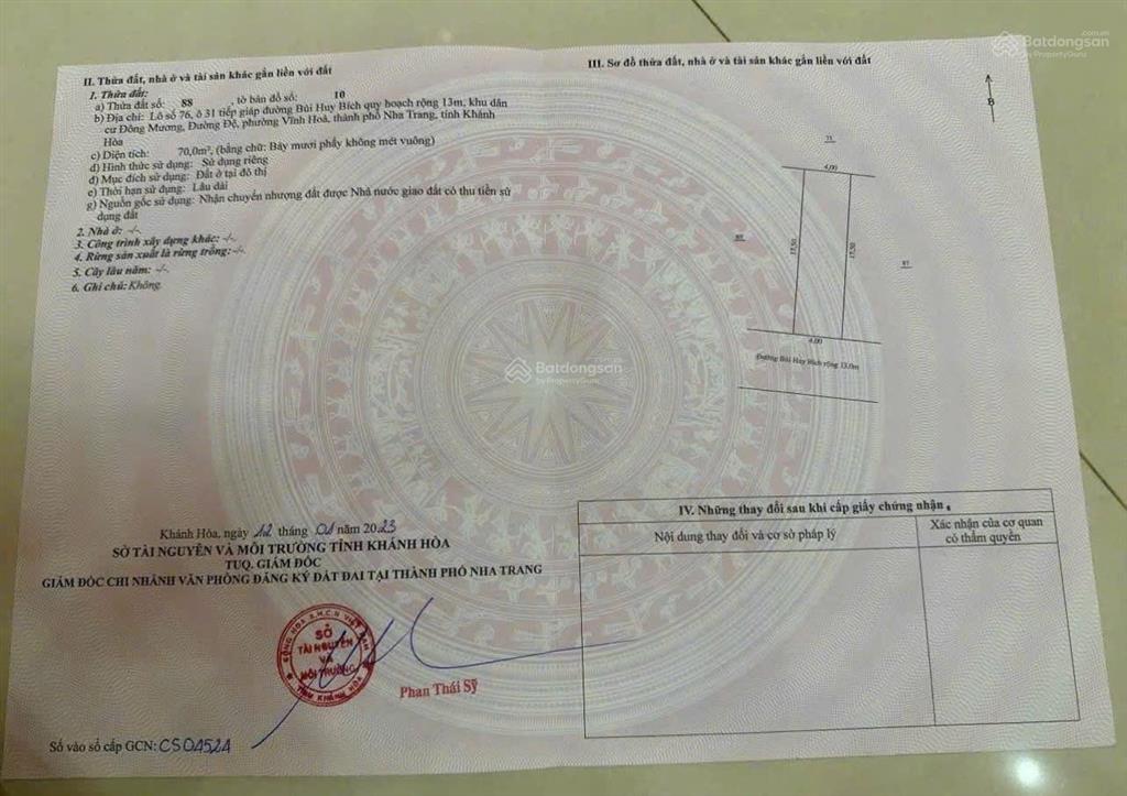Bán lô đất đẹp mặt tiền đường nhựa Bùi Huy Bích, Hòn Xện - Phường Bắc Nha Trang, cách biển chỉ 200m