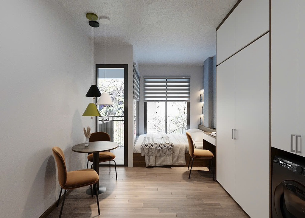 - Nhà cao 8 tầng với tổng 32 phòng khép kín cao cấp chuẩn khách sạn 6 sao. Tất cả các phòng đều có ban công thoáng sáng và máy giặt riêng