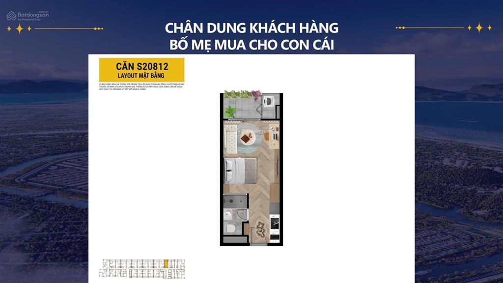 - Studio diện tích: 31,6m² / 35,6m² vốn ban đầu 25% sở hữu chỉ từ 600 triệu.