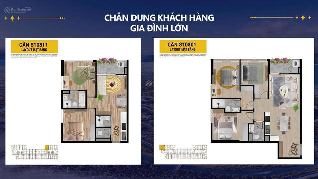 - 3PN: Diện tích: 76,9m²/ 91,7m²/ 96,9m² Không gian rộng rãi cho gia đình nhiều thế hệ.